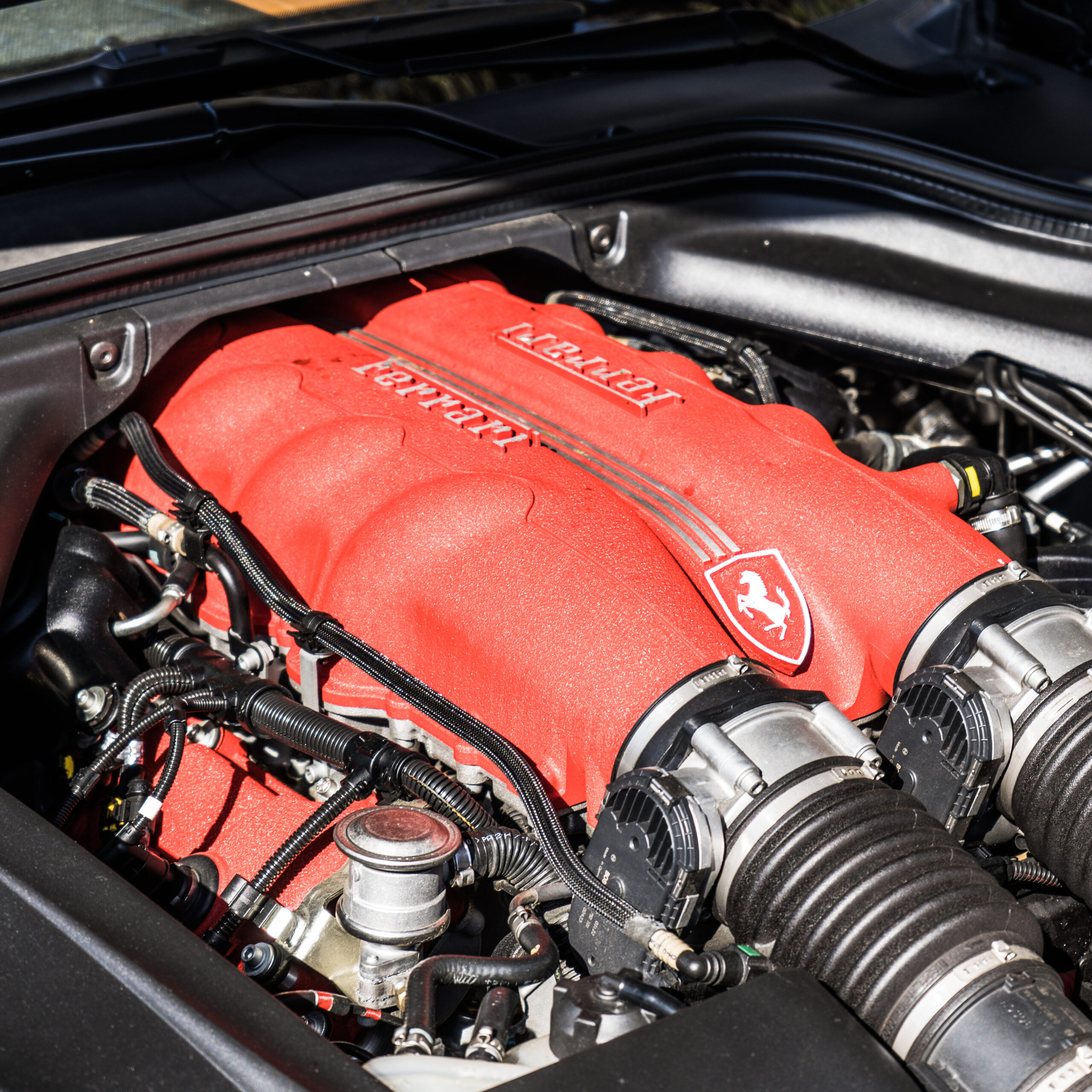 Ja, den kræver ligefrem et helt afsnit for sig selv og jeg skal lige bede de knap så nørdede bære over med mig et par linjer frem. Omdrejningspunktet i en hver bil der triller ud af fabrikken, der dagligt realiserer drømme er naturligvis: motoren. F136 V8´eren findes, dog med tørsump, i 430 og 458, og er faktisk også delt med Maserati og kan findes i både GranTurismo og Quattroporte. Den umiskendelige lyd kommer af opbygningen med flad krumtap og lidt magi med afgangssystemet. Årsagen til denne opbygning er ikke lyden, selvom det næsten ville være nok i sig selv. Årsagen skal findes i det tidligere omtalte racer-DNA. Denne type konstruktion giver en langt mere omdrejningsvillig motor, da det sænker rotationsinertien og giver derved en markant mere responssiv motor. I den konfiguration her: F136 IB leverer den 4,3 liters motor (4,297 ccm) 460 HK og 485 Nm.