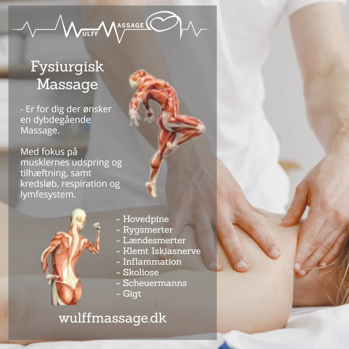 Vores massører udfører både dybdegående fysiurgisk behandling og afslappende velværemassage & gravidmassage.Vi behandler bla.: