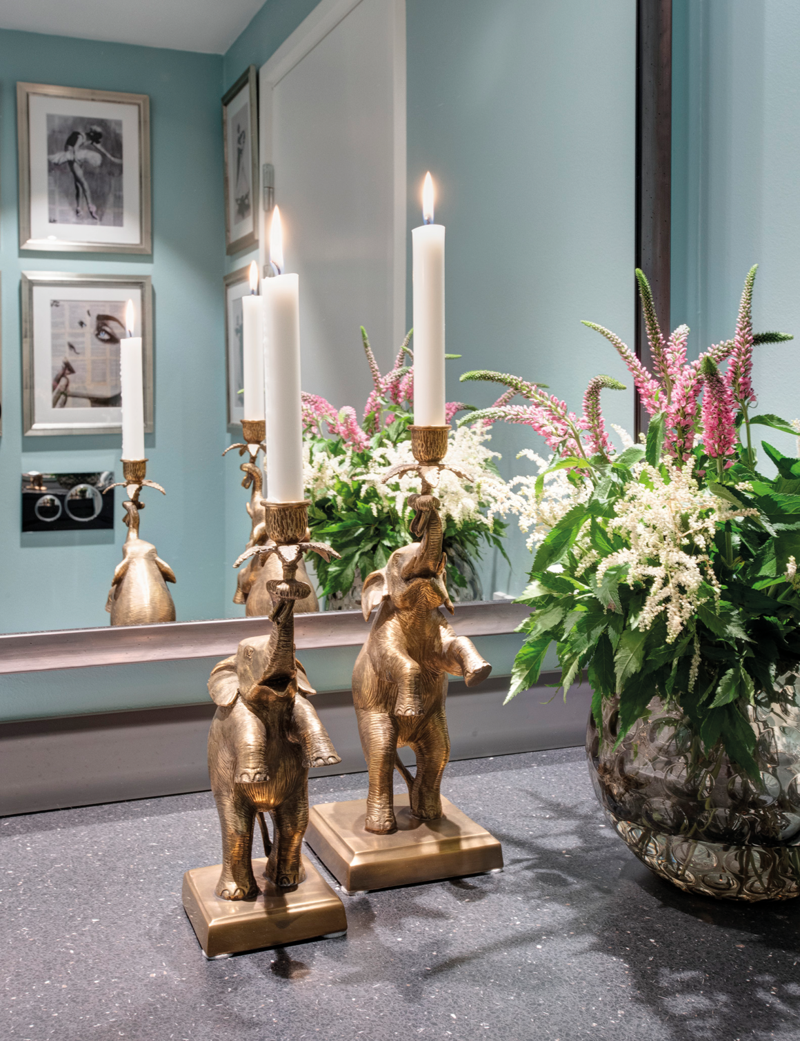 I selve indretningen genkender man tydeligt den blødhed og særlige sans for farver og materialer, som kendetegner Lailas indretning. Alle møbler og lamper er fundet i Lailas butik på Østerbro, mens kunsten er en blanding af nyt fra butikken og kundens eget. ”Det kan ofte være de små pynteting, der udfordrer, fordi man er bange for at have for meget nips, men hjemmet lever ikke uden. Det rigtige lys, kunst på væggene og bløde stoffer er grundelementer i indretningen, mens vaser, blomster, levende lys, små skulpturer og andre sjove ting giver indretningen sjæl,” slutter Laila Hansen.