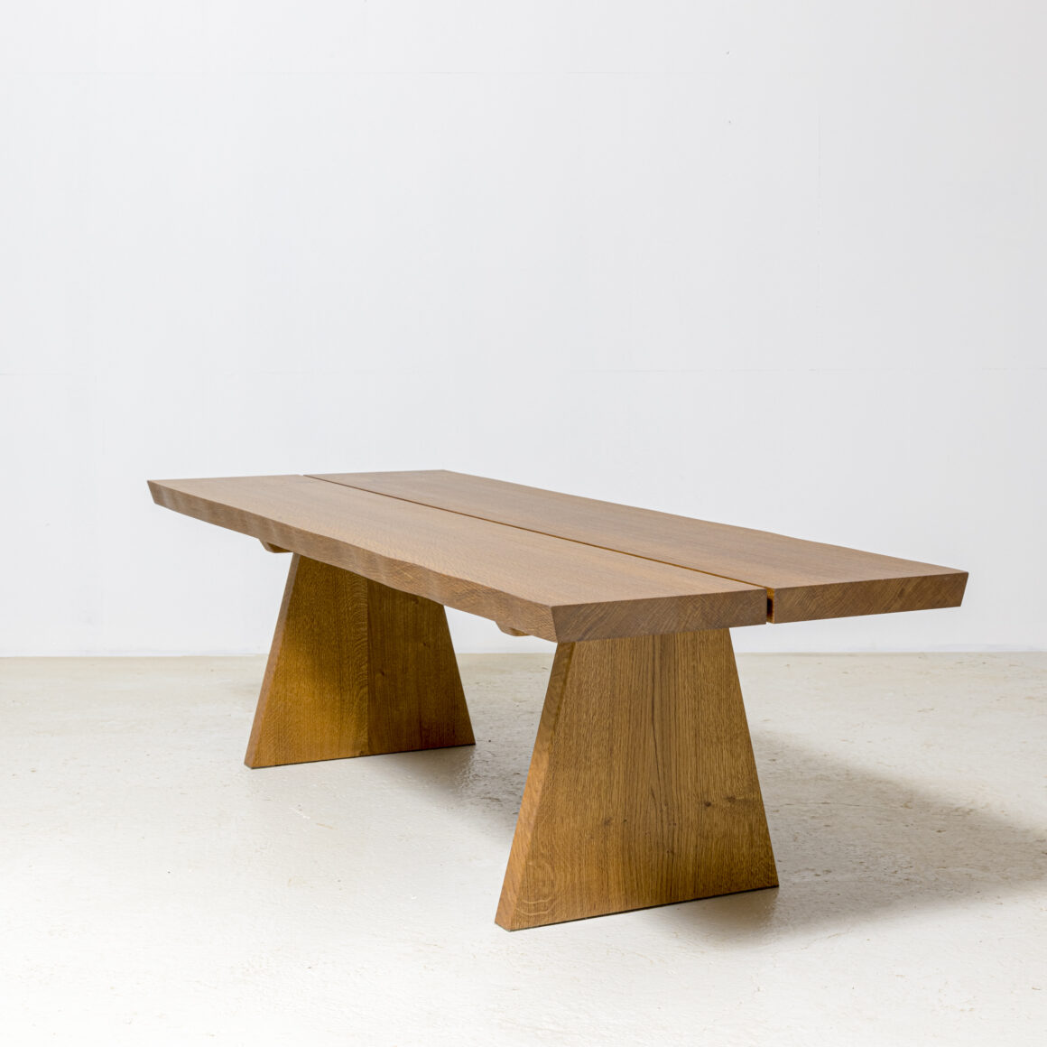 om at arbejde med egetræ, der er 150-200 år gammelt. Det er en træsort, der er ekstrem hårdfør, og bordene kan derfor holde i mindst 100 år.