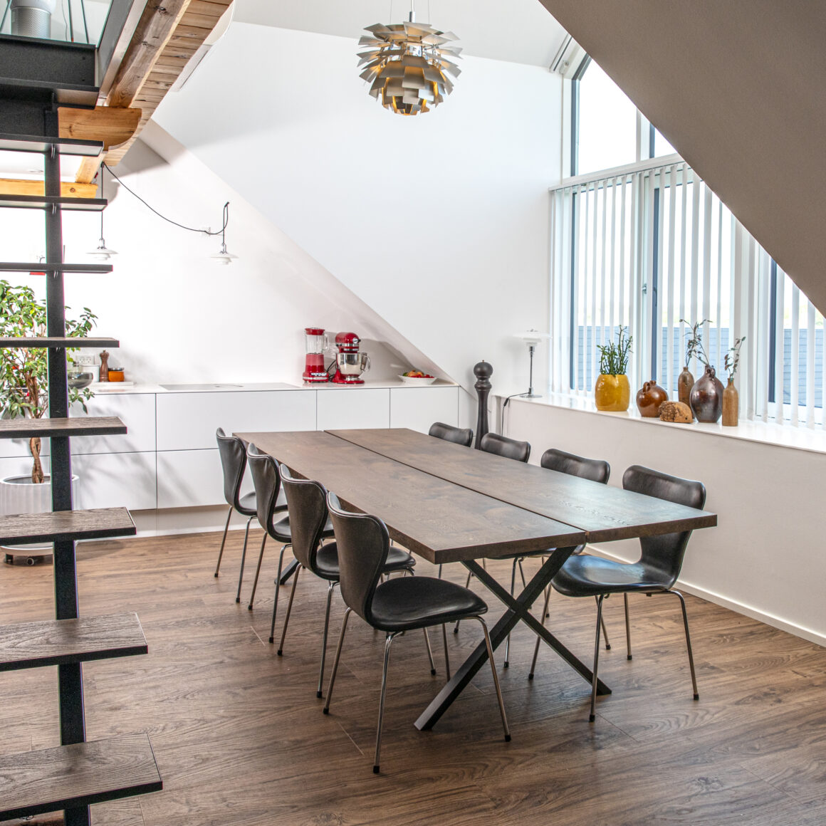 Alle de borde, René fremstiller, laves udelukkende ud fra kundens specifikke ønske, så de er skræddersyet efter behovet. ”Jeg synes derfor ikke, det er forkert at sige, at det er lidt personligt, når man får et bord hos mig. Da de laves individuelt, er jeg i tæt kontakt med hver enkelt kunde. Det kan for eksempel være, at man er med til at bestemme, hvor langt og bredt det skal være, hvilken slags kanter skal det have, hvilken trænuance ønsker man, og hvilket stel foretrækker man. Der er et vist sortiment og udvalg at vælge i mellem, men jeg kan også godt imødekomme, hvis man har nogle specielle ønsker,” på- peger René.